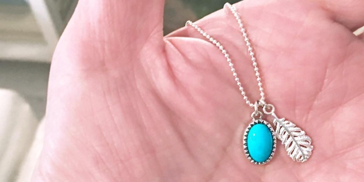 2025.08.08「石枠ターコイズ(ユーラシアブルー)と羽根のネックレスB」☆数量限定品