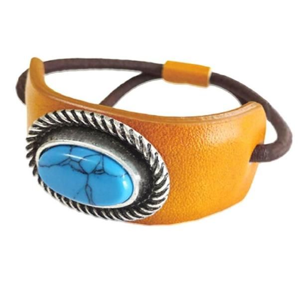 ターコイズコンチョのヘアーカフス+ブレス(タン)